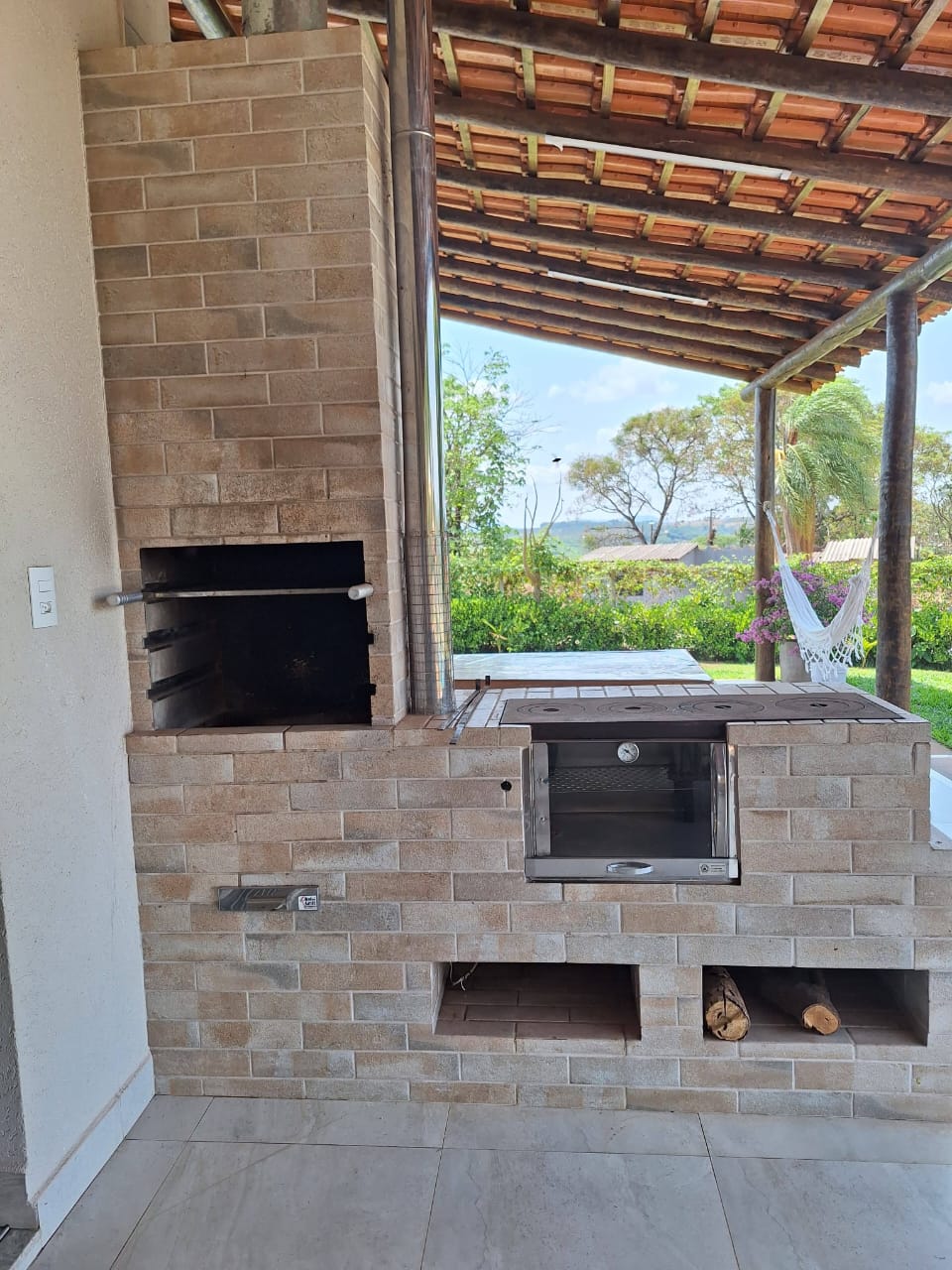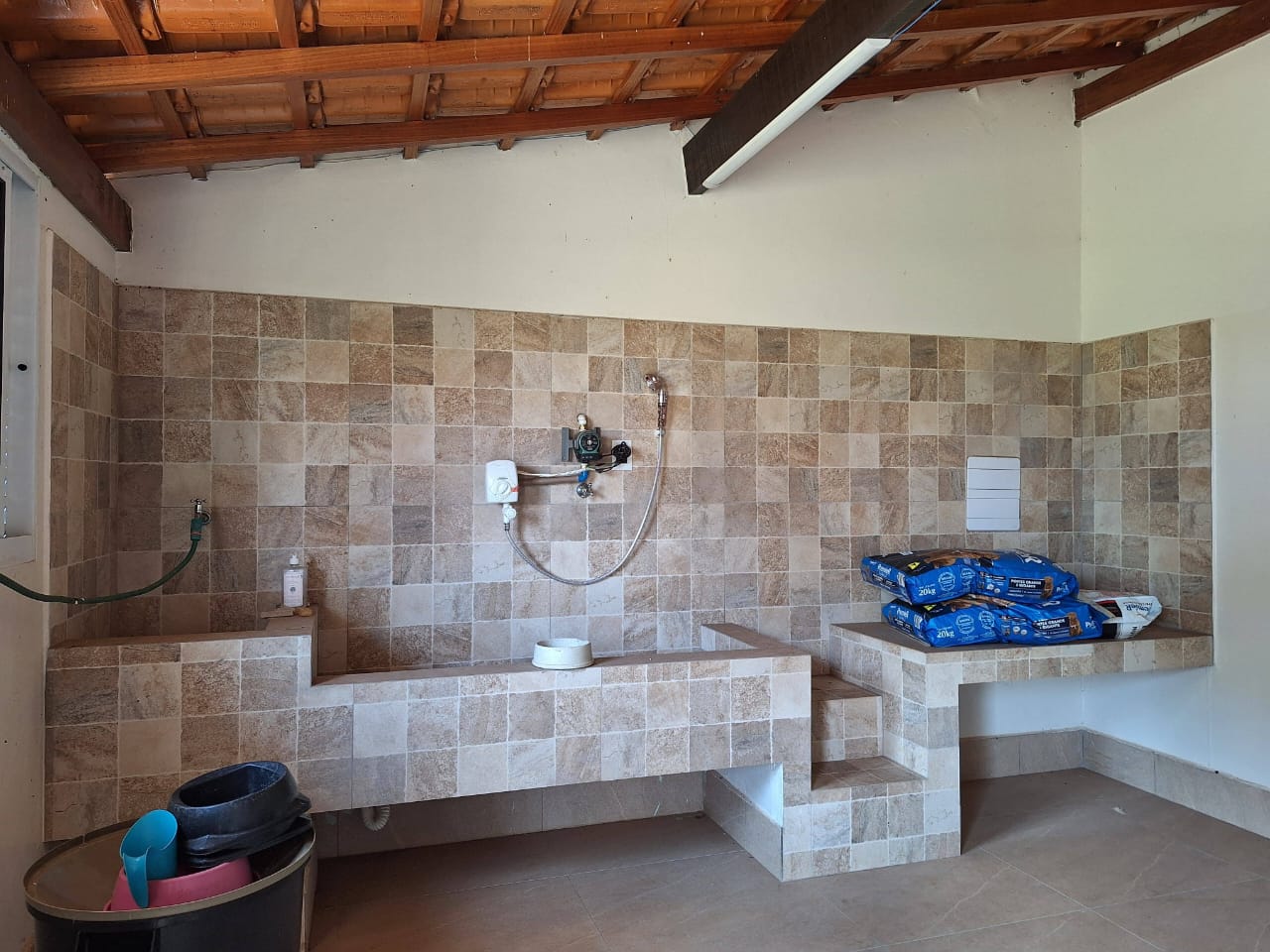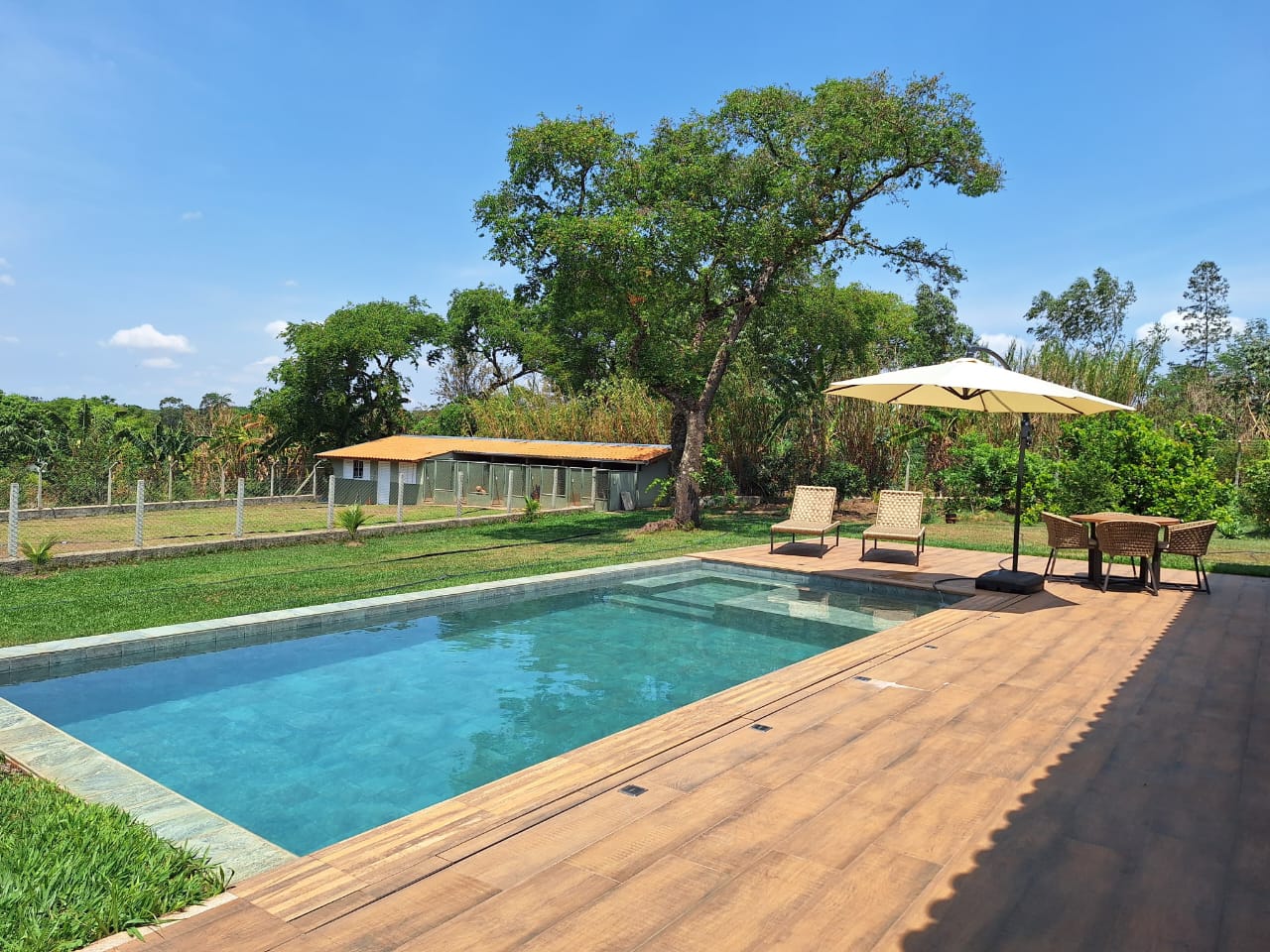 A área de lazer é cuidadosamente planejada, toda gramada, oferecendo espaço ideal para churrascos e encontros ao ar livre. Para os amantes de animais e do estilo de vida rural, o sítio conta com canil projetado, curral funcional para cabras e galinheiro, possibilitando atividades agropecuárias ou criação de pequenos animais.